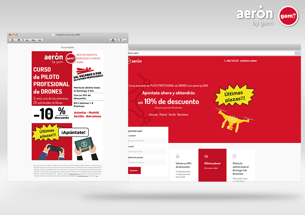 Landing a medida y Campaña de captación de potenciales clientes Aeron by GAM