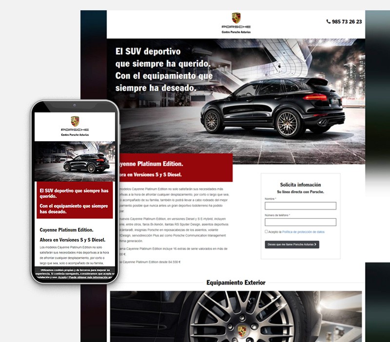 Landing a medida y Campaña de captación de clientes potenciales de Porsche Cayenne Platinum Edition