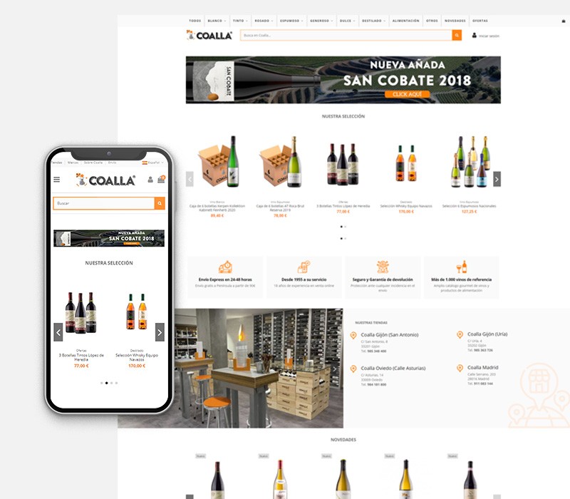 Varios meses de trabajo complejo pero inspirador para poder decir: objetivo cumplido. La nueva tienda coallagourmet.com es más rápida, más SEO friendly y proporciona una mejor experiencia de usuario, que se traduce en mejores porcentajes de conversión y más ventas. Orgullosos de que el trabajo de diseño y desarrollo, y nuestra estrategia SEO y SEM, se junte con los mejores vinos, para llevar al éxito la tienda online de Coalla.
