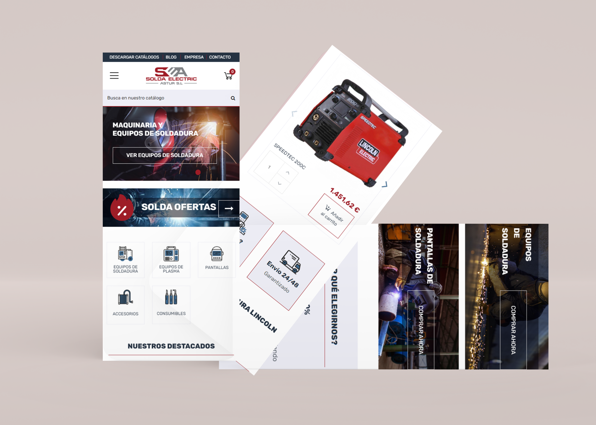 Como Prestashop Partners, el eCommerce de Soldaelectric fue diseñado y desarrollado por Visualit con Prestashop 1.7, la mejor plataforma para la experiencia de usuario y el Marketing Online. Nuestro equipo configuró la tienda online con un diseño a medida, programó el Back Office, dio asistencia en la carga de productos y se encargó de los textos legales y de la configuración técnica de cookies y protección de datos RGPD.