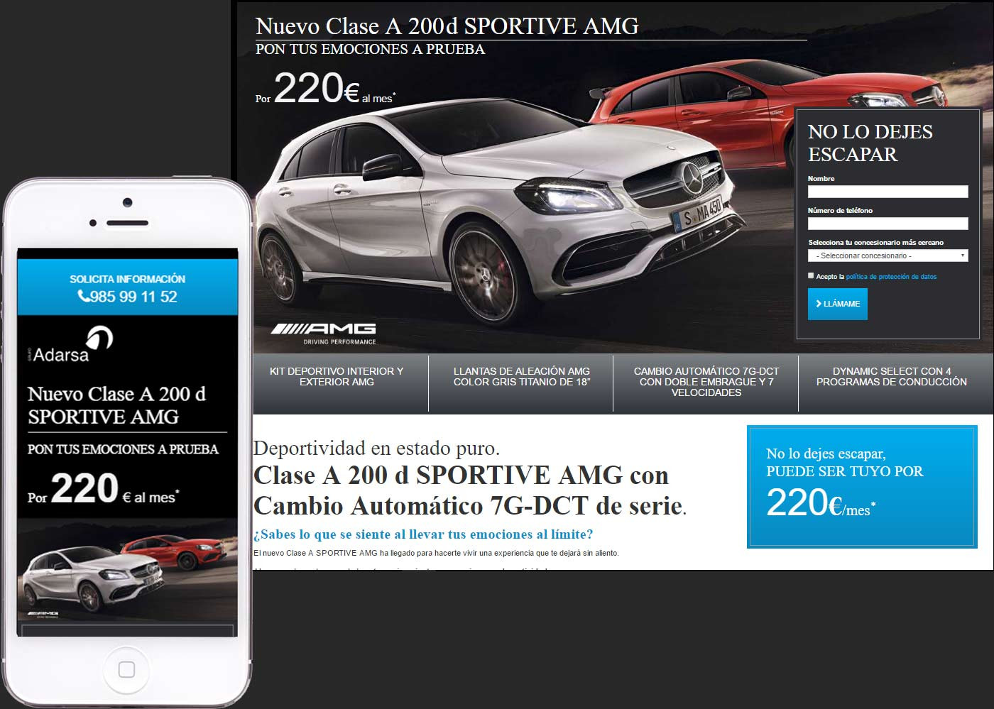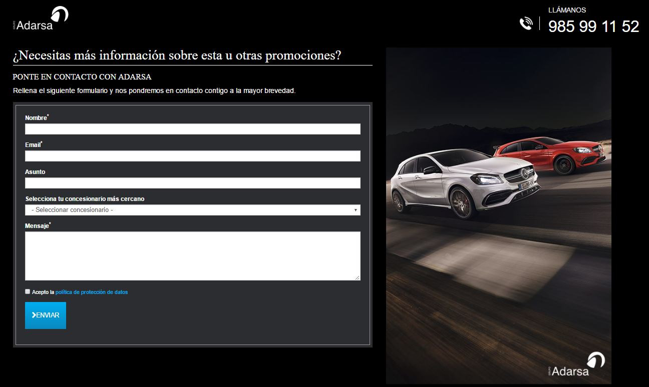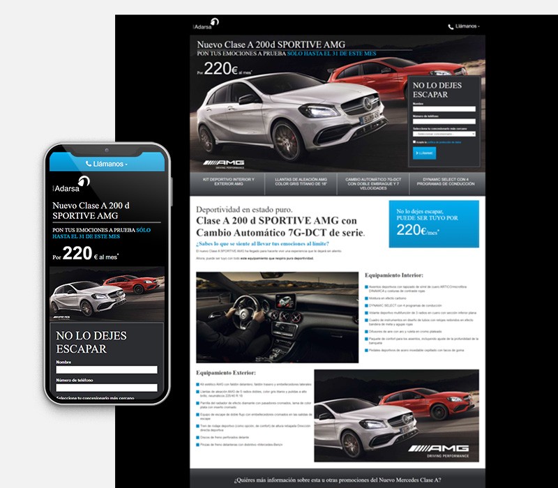 Landing a medida y Campaña de captación de clientes potenciales de Clase A 200d para Adarsa